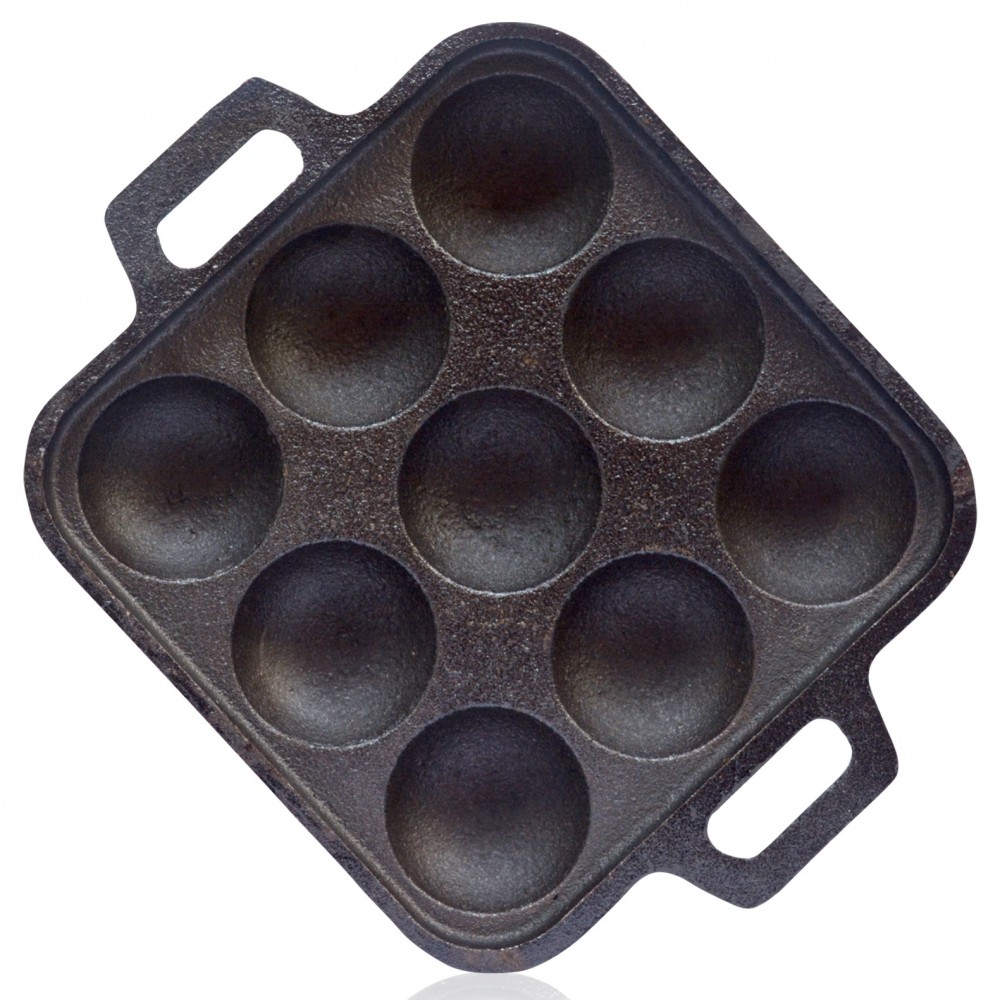 Cast Iron Kuzhipaniyara Kal (9 Kuzhi) is a typical South Indian Chettinad dish, paniyaarams ar..